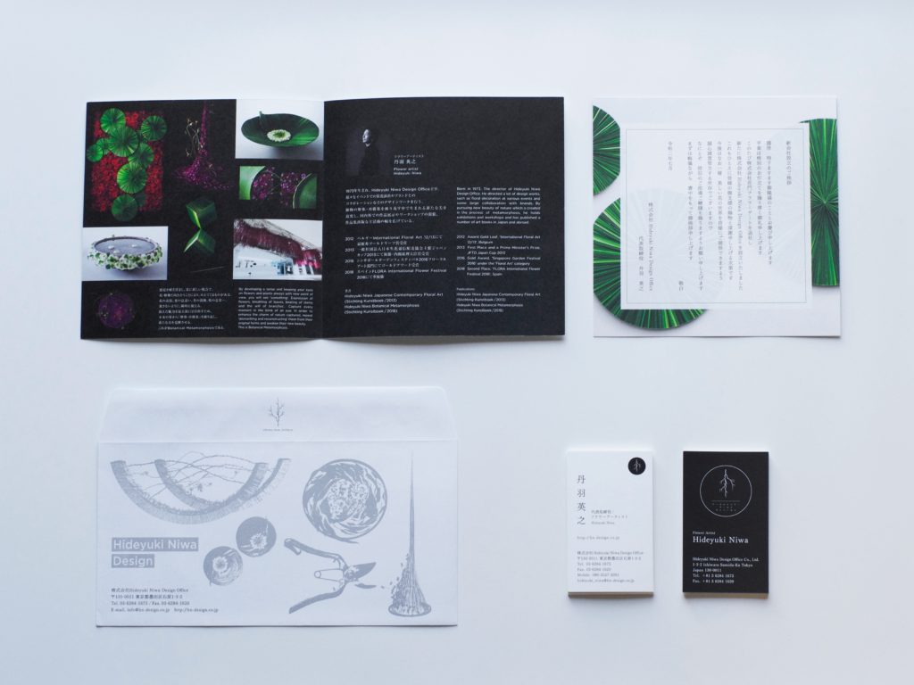 フラワーアーティスト丹羽英之が立ち上げたHideyuki Niwa Design Officeのロゴ及びツール、ポスターなどを数年にわたりデザインしています。